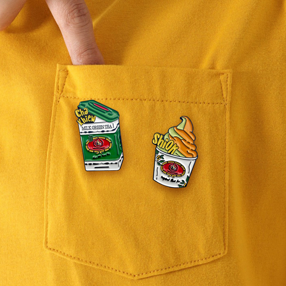 Enamel pins illustrations for the iconic ChaTraMue Thai tea brand.