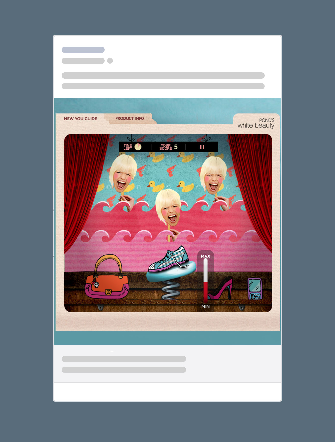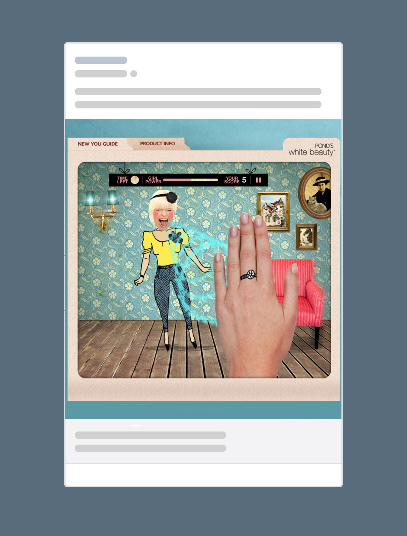 A Facebook game for POND'S White Beauty social media campaign, mixing illustrations with collage.